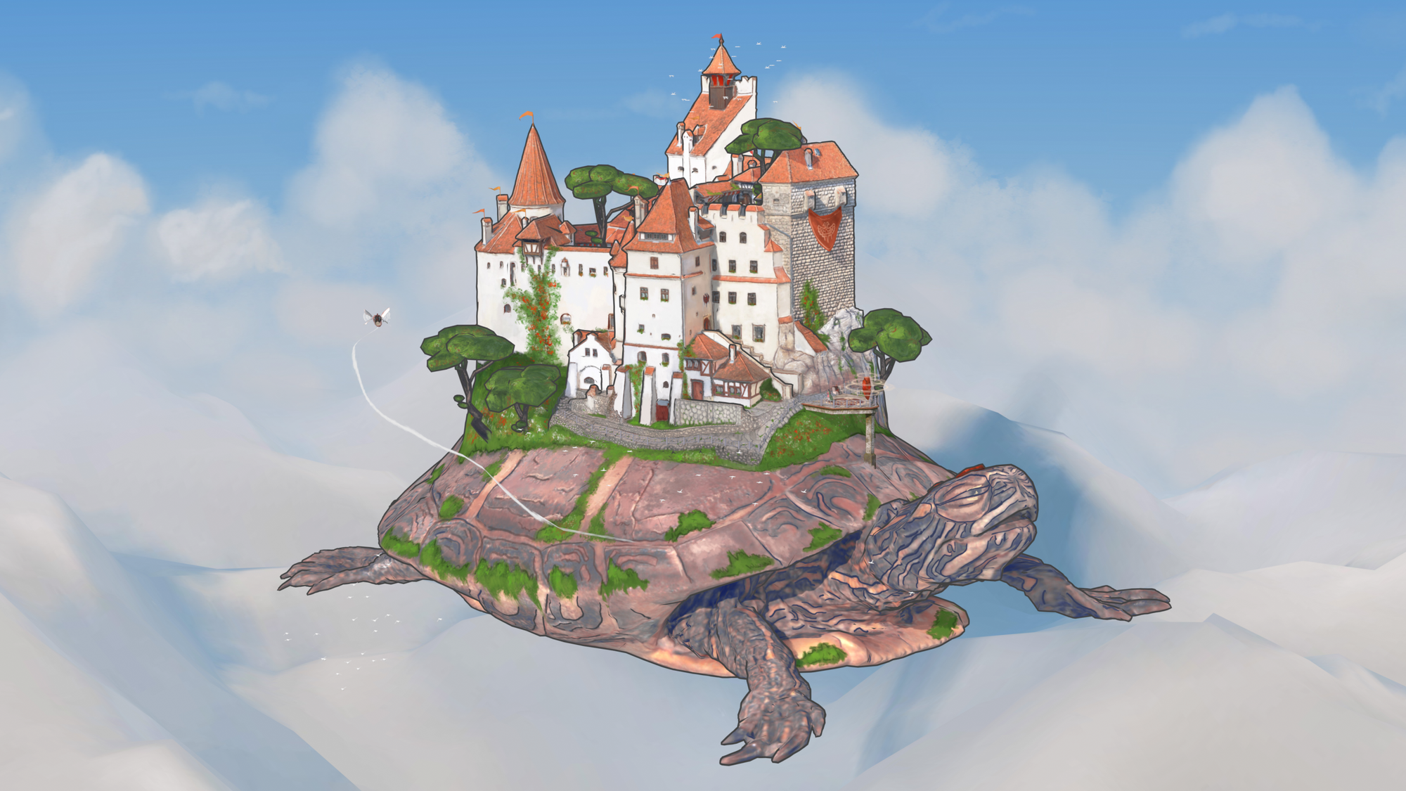 - "Castle in the Sky" is created based on a photogrammetry scan by Shahriar Shahrabi, licensed under the standard license.